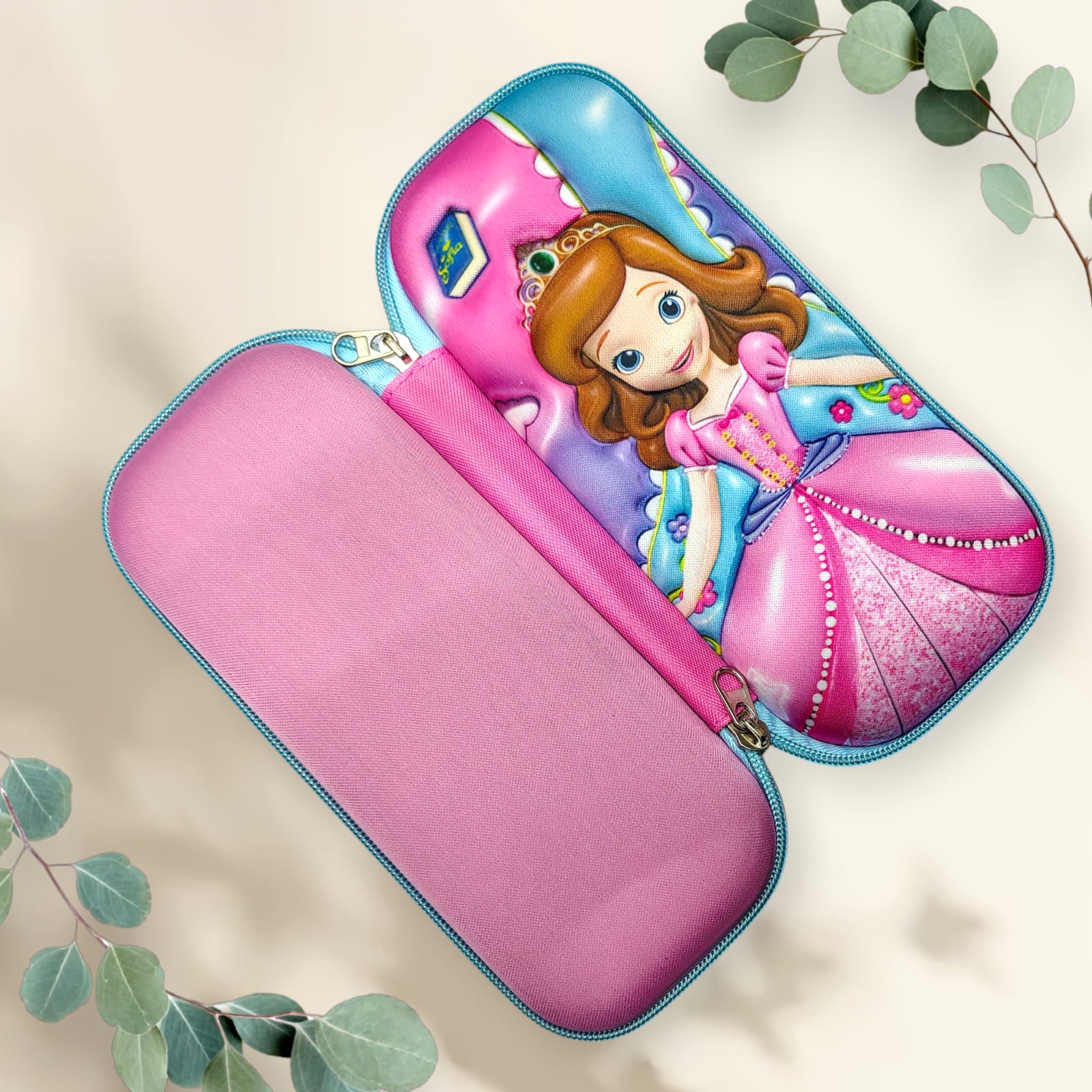 3D Design Embossed Hardtop Cover Pencil Case with Compartments, Pencil Pouch for Kids, School Supply Organizer, Geometry Stationery Box, Cosmetic Zip Pouch Bag (Barbie-5)