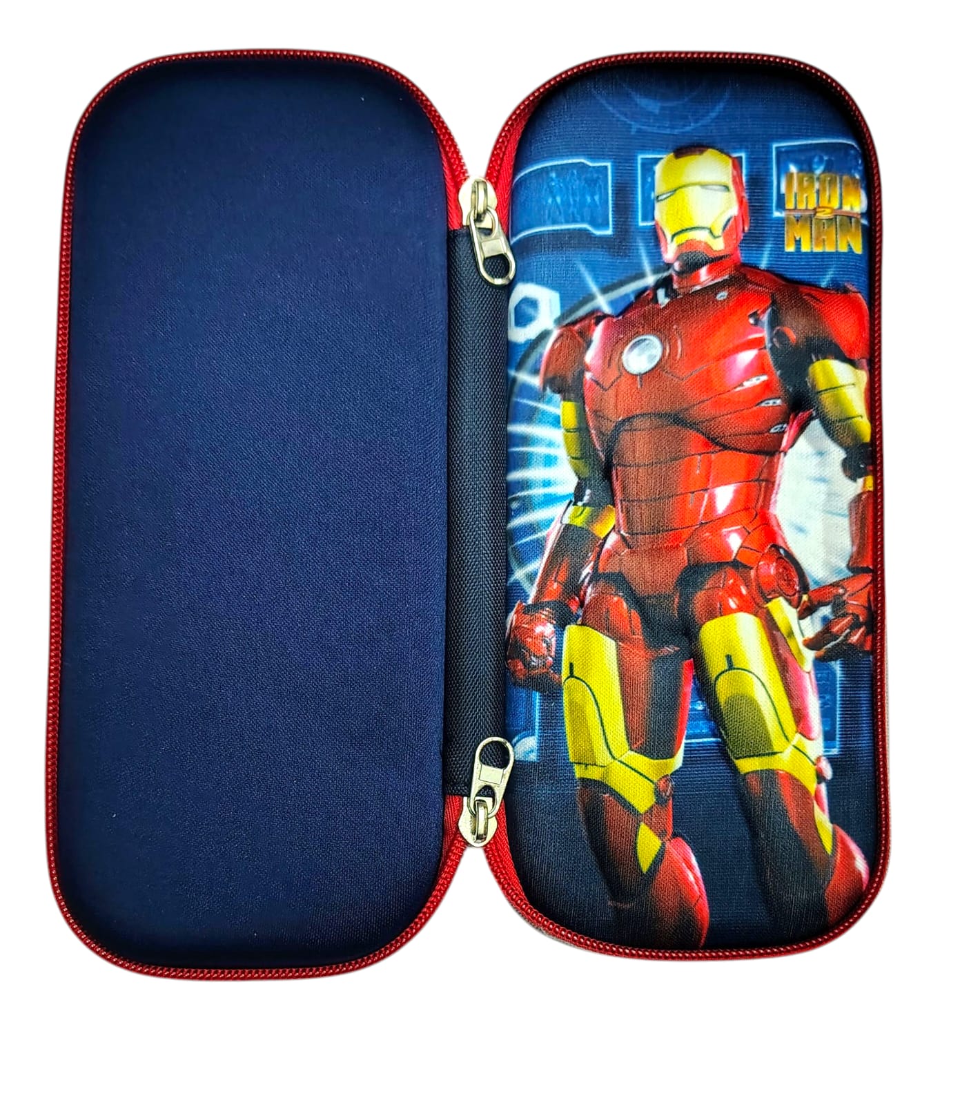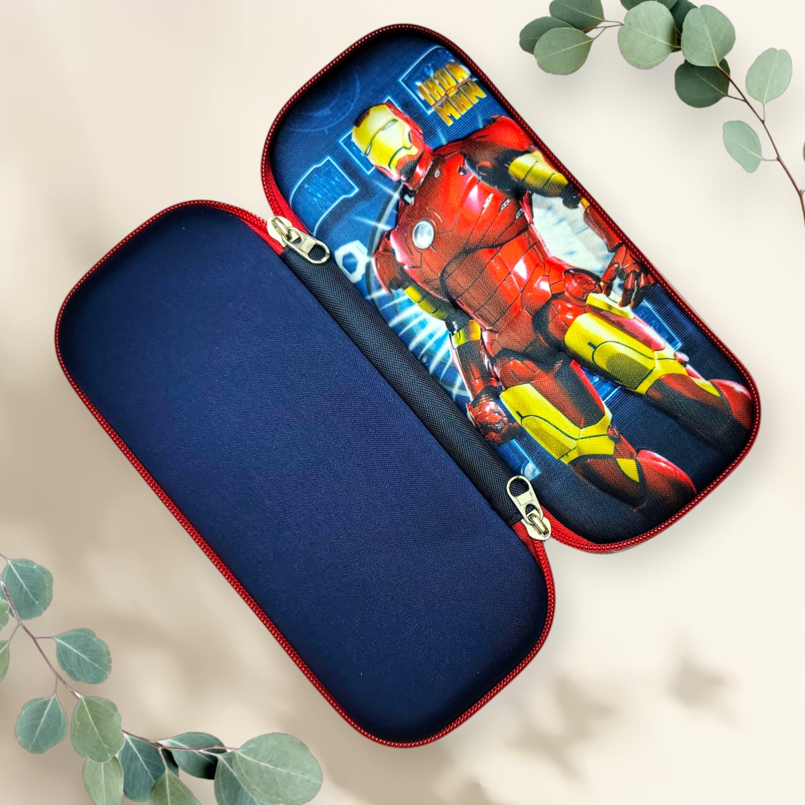 3D Design Embossed Hardtop Cover Pencil Case with Compartments, Pencil Pouch for Kids, School Supply Organizer, Geometry Stationery Box, Cosmetic Zip Pouch Bag (Iron Man)