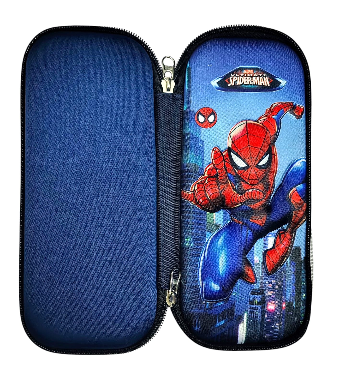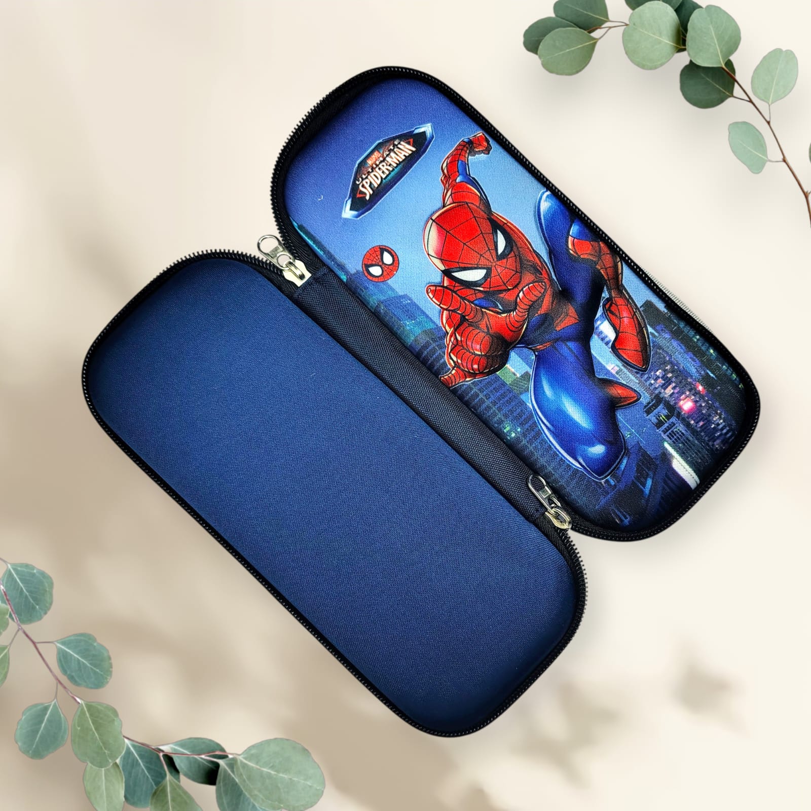 3D Design Embossed Hardtop Cover Pencil Case with Compartments, Pencil Pouch for Kids, School Supply Organizer, Geometry Stationery Box, Cosmetic Zip Pouch Bag (Spider Man-1)