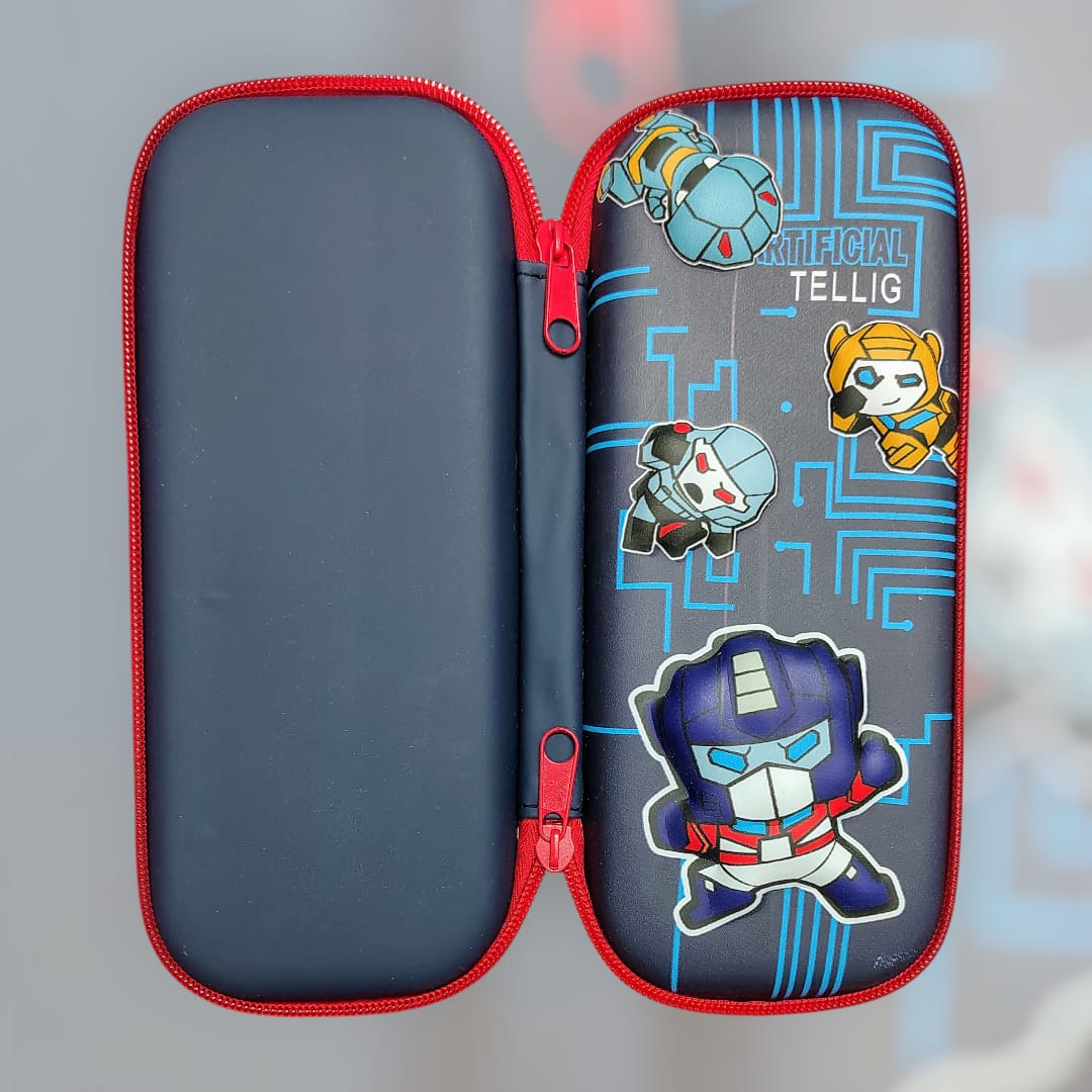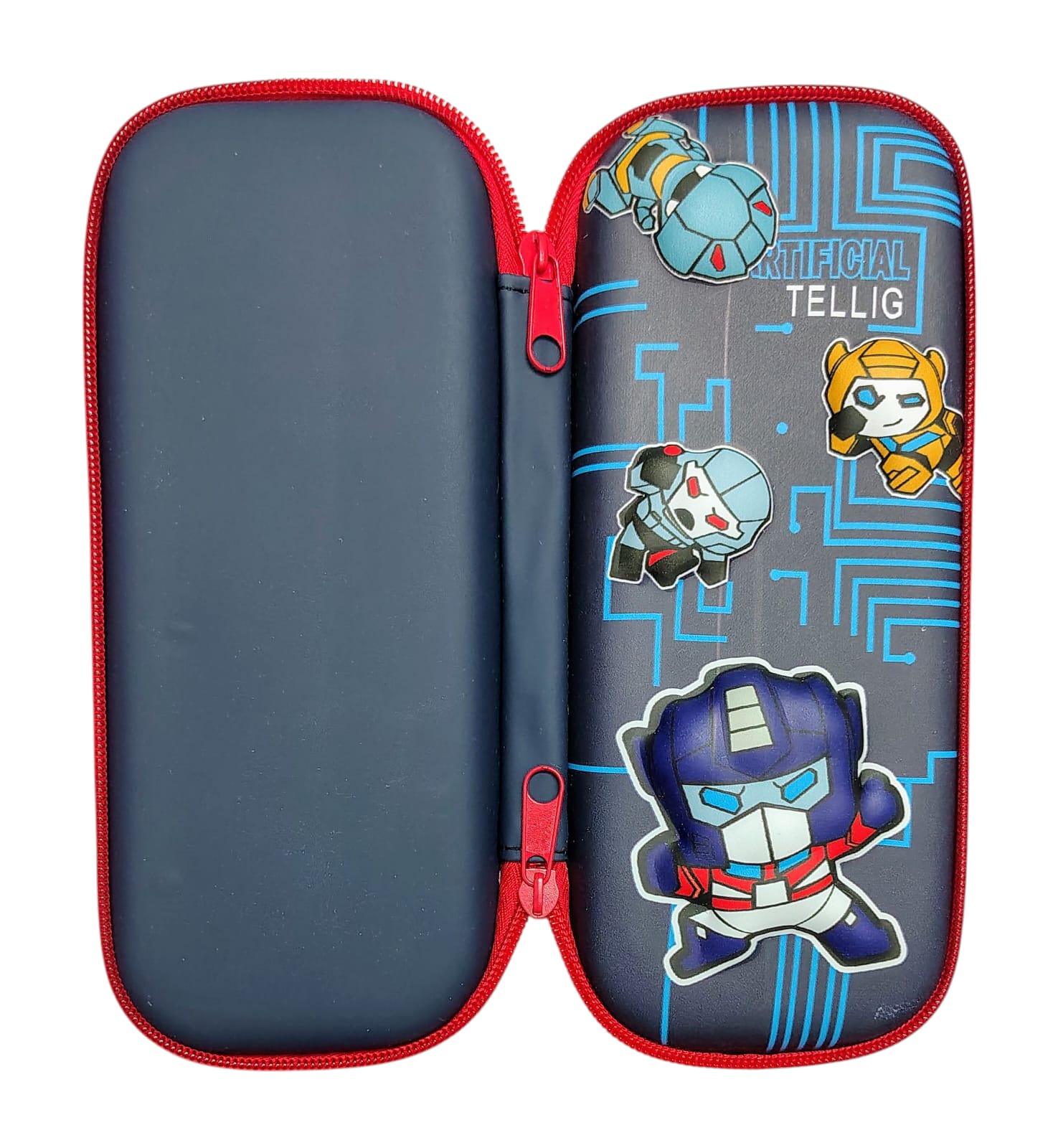 3D EVA Design Embossed Hardtop Cover Pencil Case with Compartments, Pencil Pouch for Kids, School Supply Organizer, Geometry Stationery Box, Cosmetic Zip Pouch Bag (Robot)