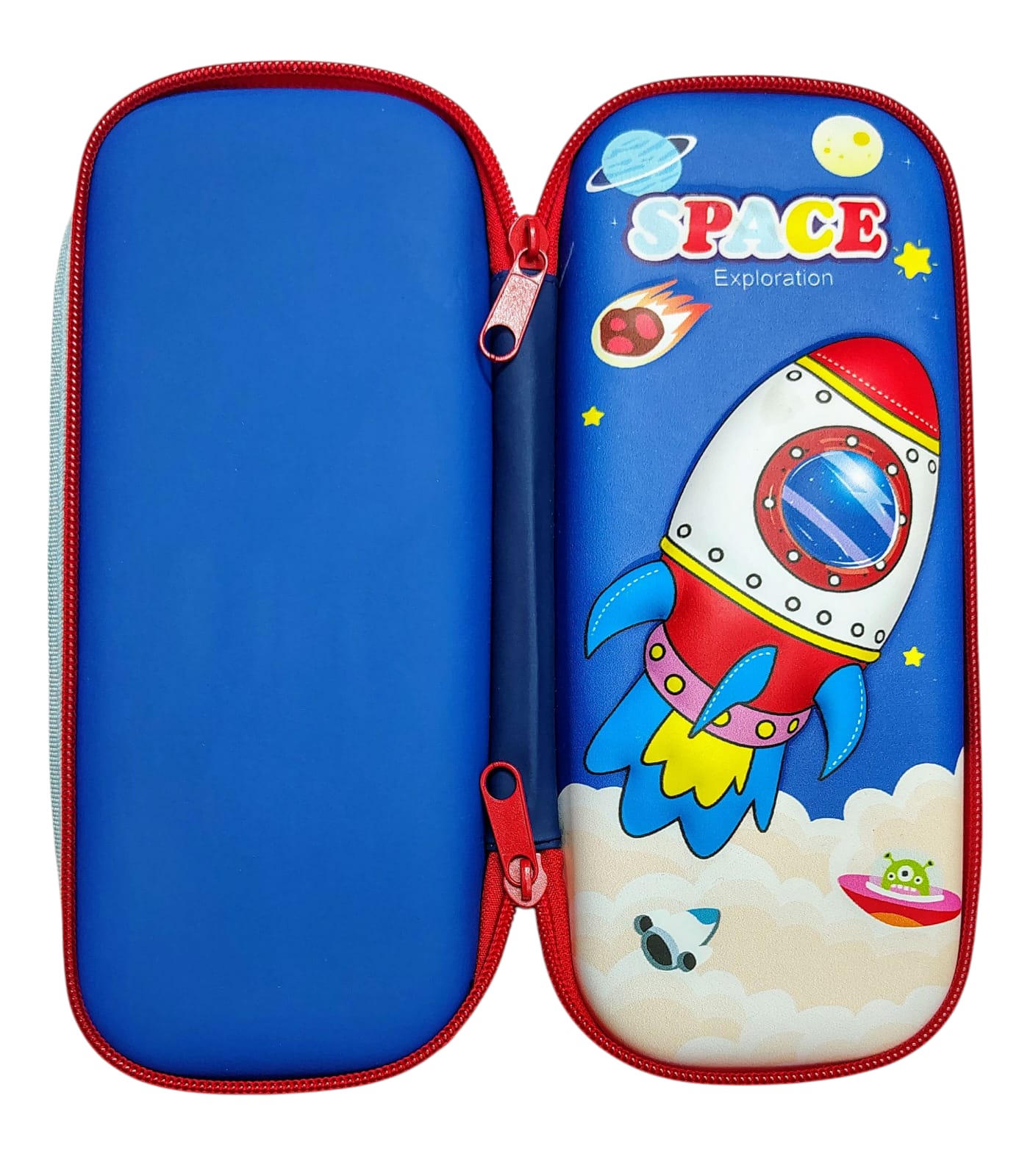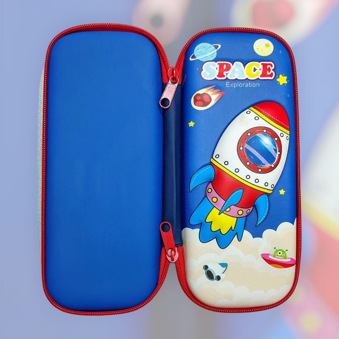 3D EVA Design Embossed Hardtop Cover Pencil Case with Compartments, Pencil Pouch for Kids, School Supply Organizer, Geometry Stationery Box, Cosmetic Zip Pouch Bag (Space)