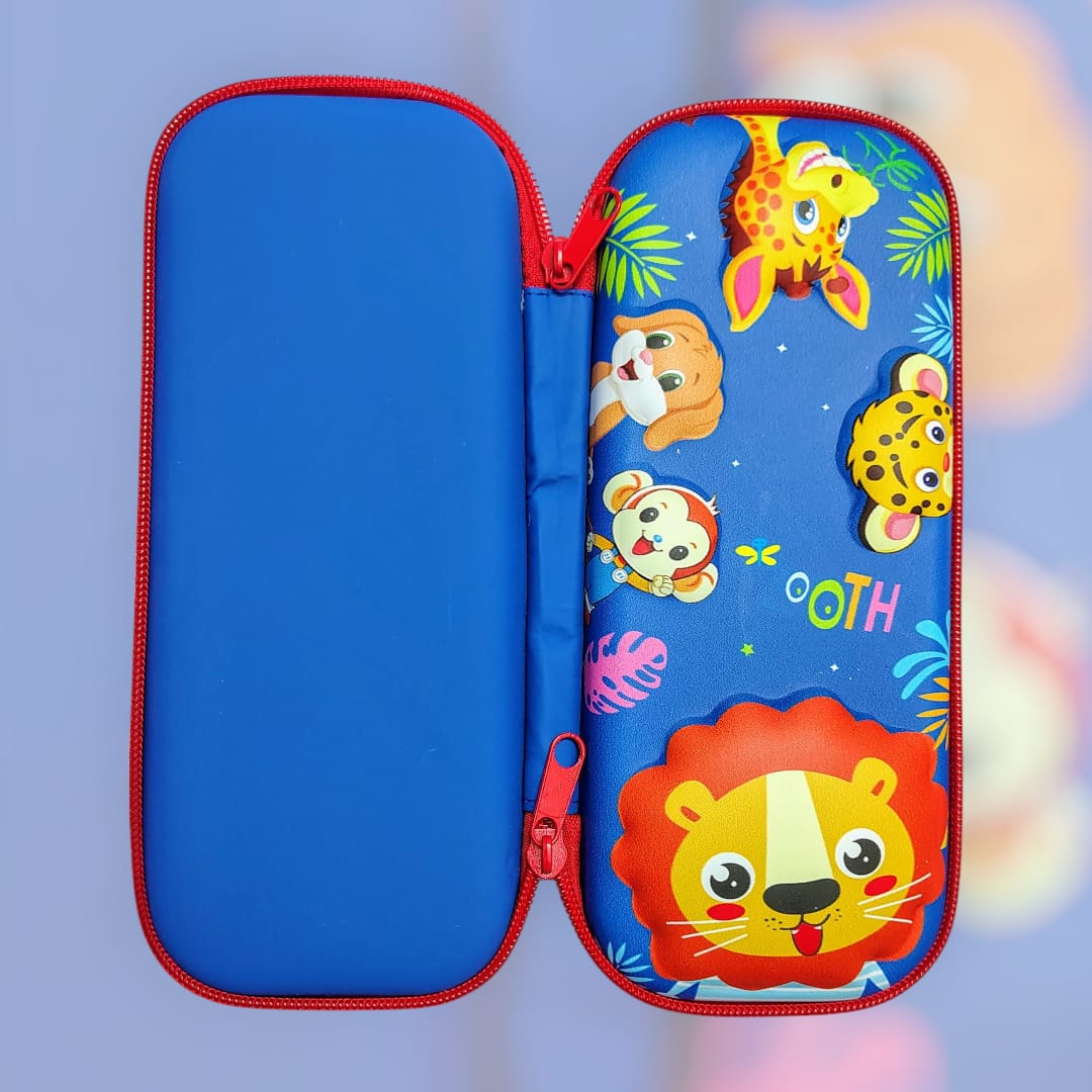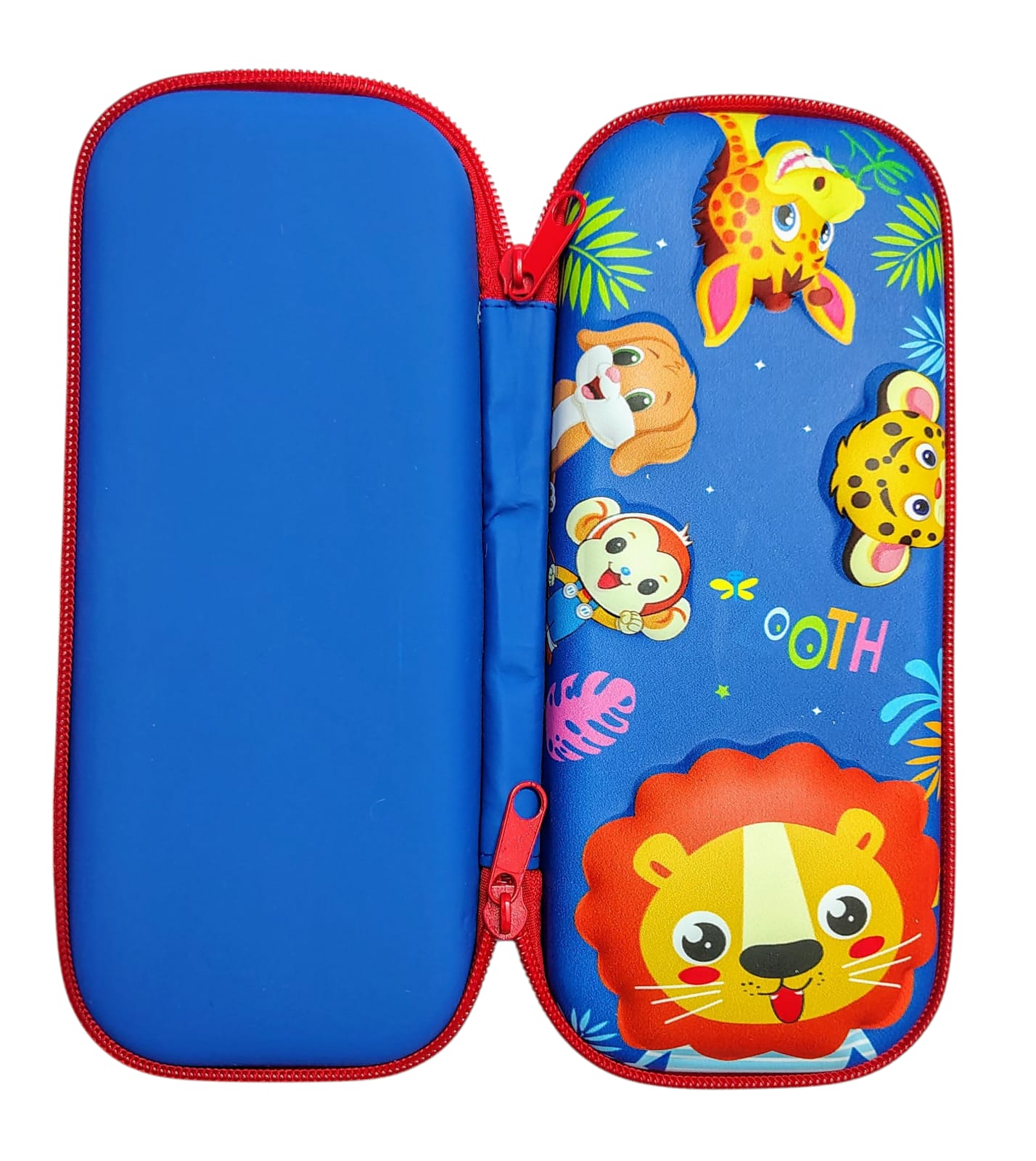 3D EVA Design Embossed Hardtop Cover Pencil Case with Compartments, Pencil Pouch for Kids, School Supply Organizer, Geometry Stationery Box, Cosmetic Zip Pouch Bag (Tiger – Zoo)