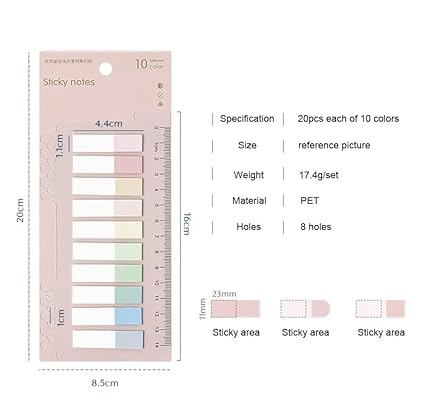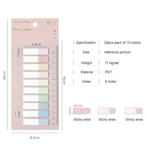 Color Sticky 200pcs Index Tabs Sticky Notes with Ruler Color Sticky Tabs for Notebook, Books, PET Material Page Tabs Sticky Flags