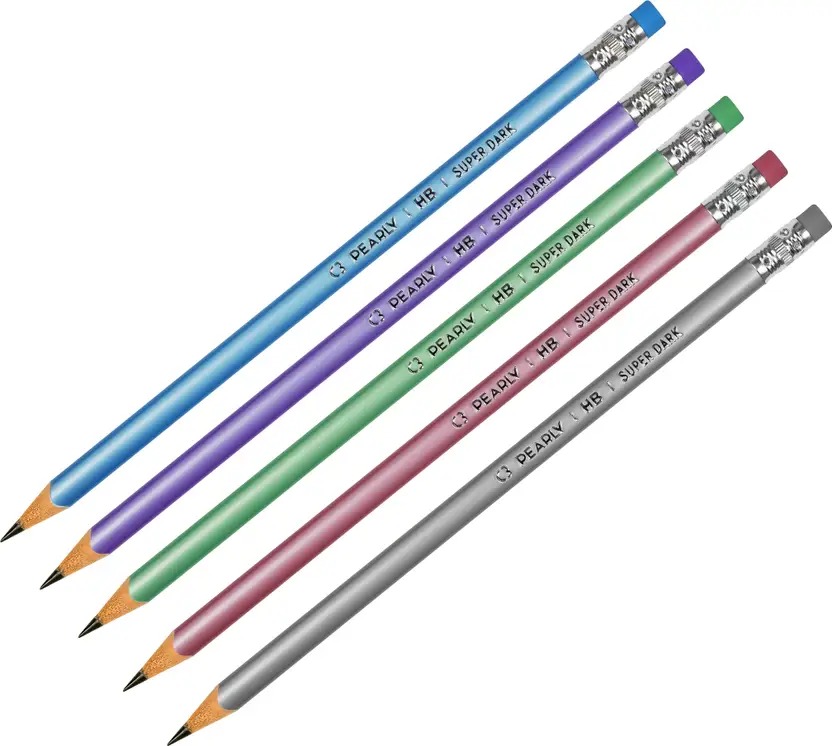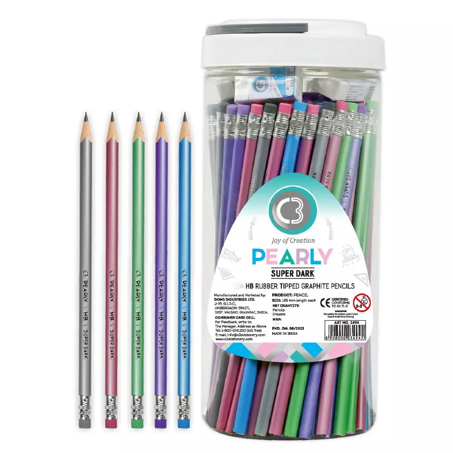 DOMS C3 Pearly Super Dark HB Rubber Tipped Graphite Pencil 100 pcs with Eraser 5 Pcs