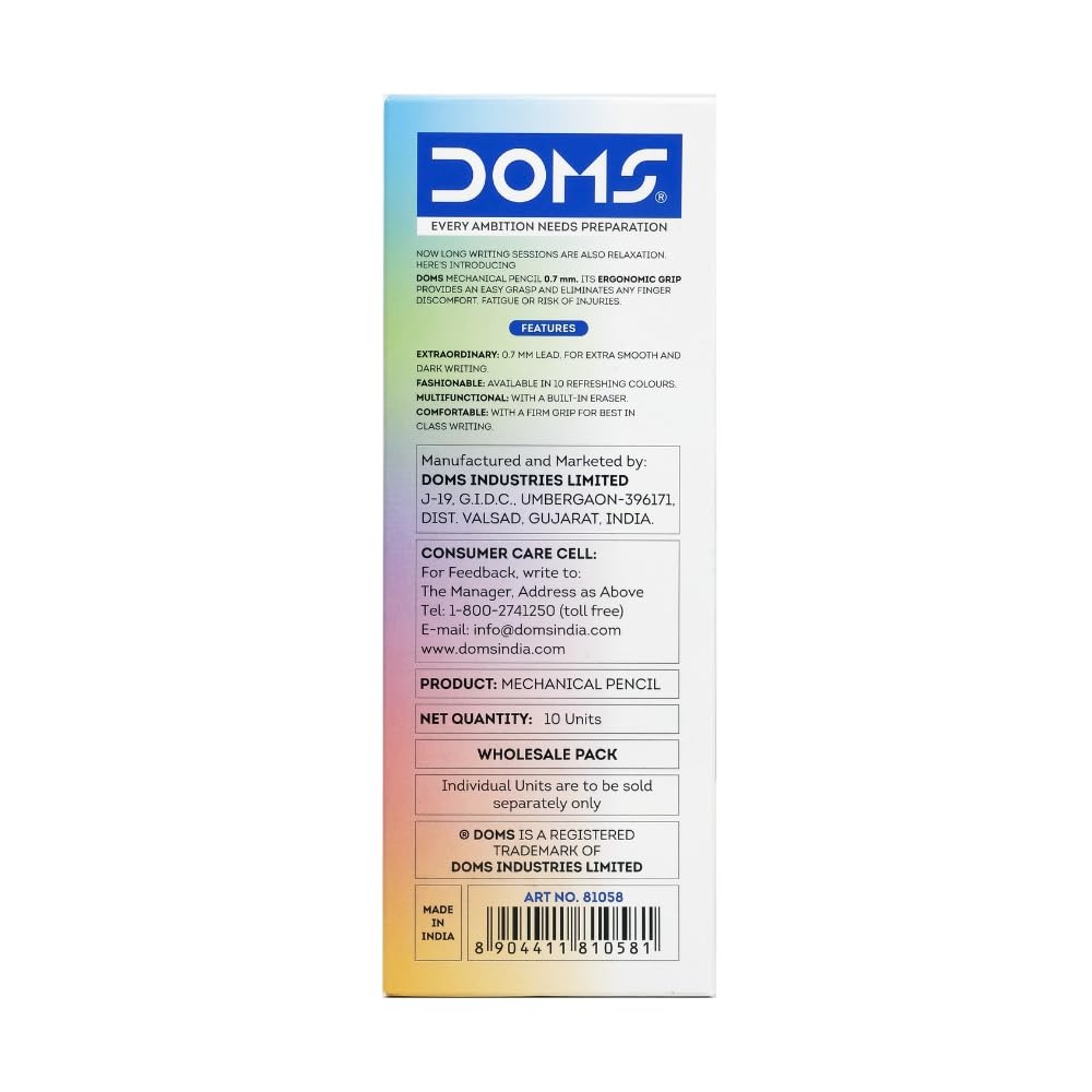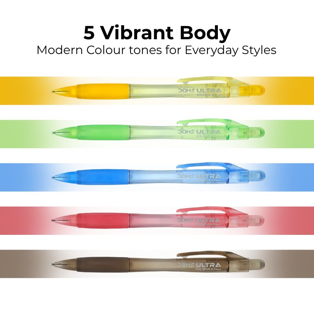 Upgrade your writing experience with the DOMS Ultra Click Mechanical Pencil, designed for precision, comfort, and style. Whether you’re a student, professional, or artist, this pencil delivers effortless writing with a sleek and colorful look.