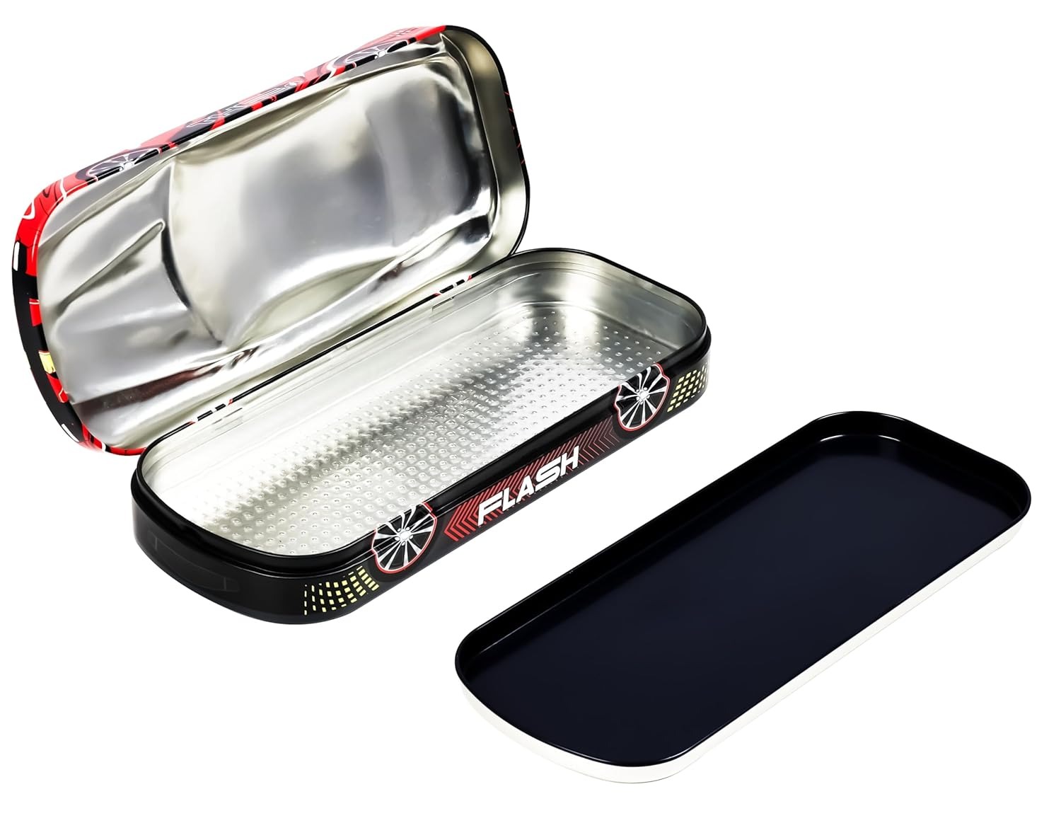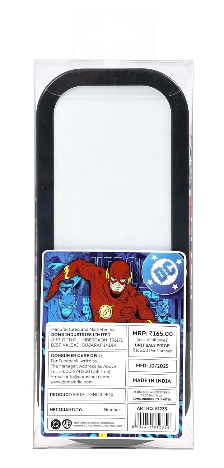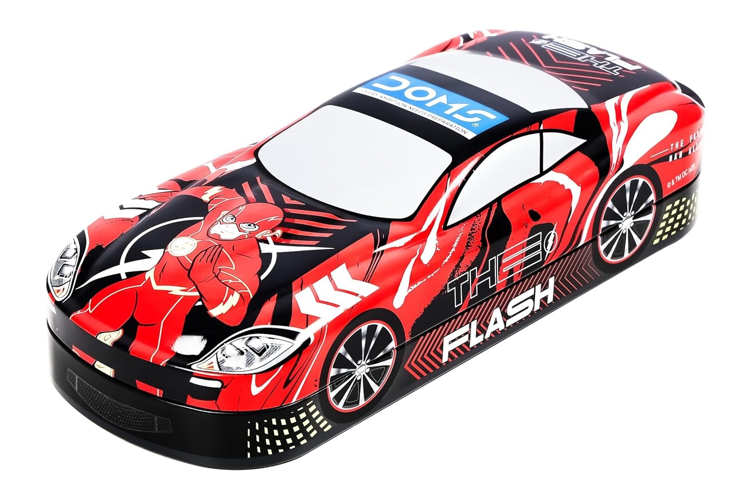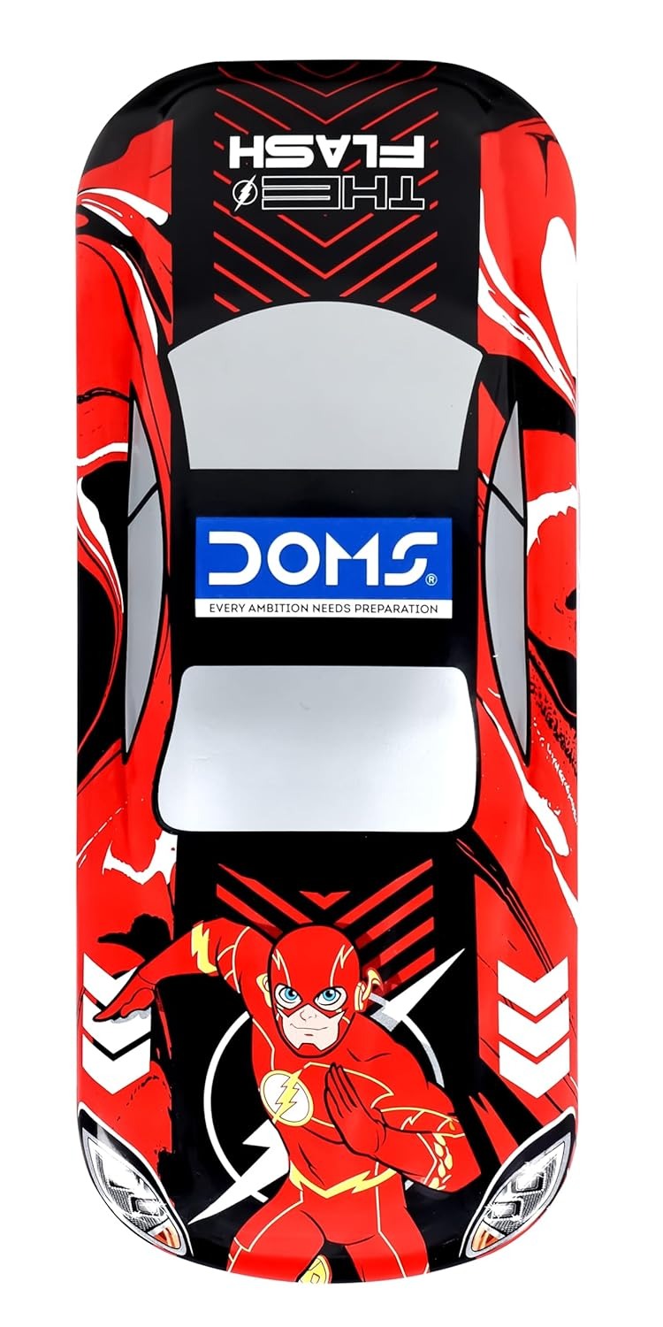Make school time exciting with the DOMS Flash Car Tin Pencil Box. Designed like a sporty car with a bold Flash superhero theme, this pencil box combines style, durability, and smart organization.