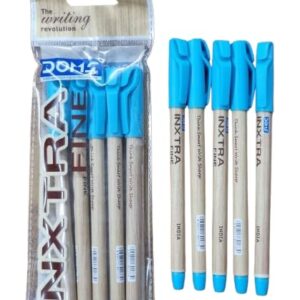 - Pack Contents: DOMS INXTRA FINE WOODEN DESIGN BODY 0.7mm Ballpoint Pen with Blue Ink, Set of 5 pens with transparent multicolor body design