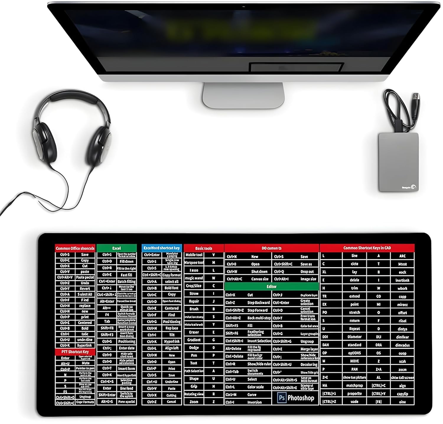 - The large mouse pad is washable, the surface fabric of large excel shortcut mouse pad has a good color- locking effect, and not easy to fade after repeated washing, and the delicate stitching on the prevents fraying and curling, and is durable.