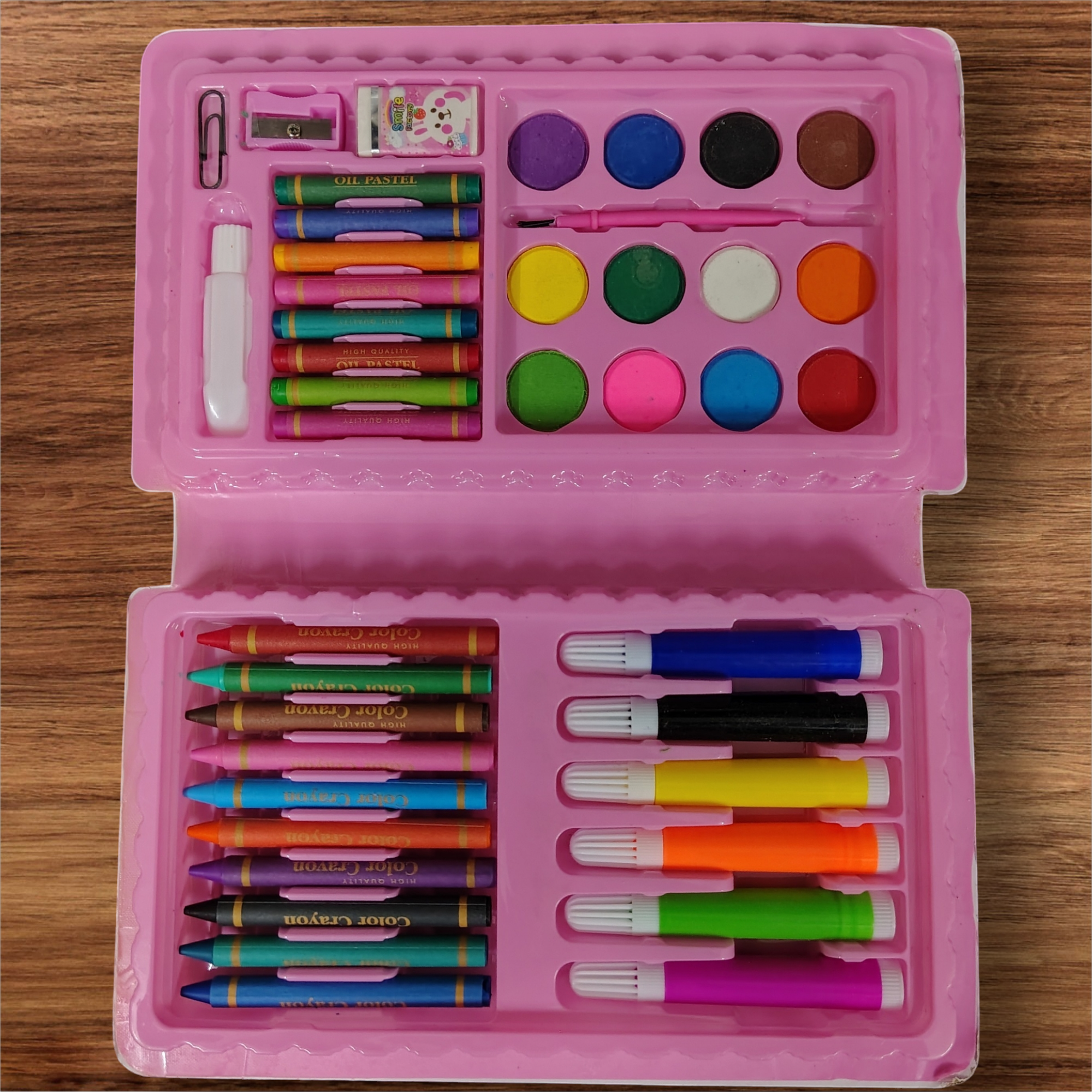 42 Pcs Drawing Color Kit Gift Set,Doodle Sketch Crayon Painting Water Paint Art Colour Kit for Kids (Pink)