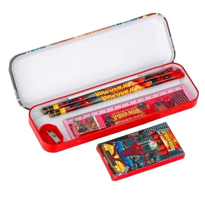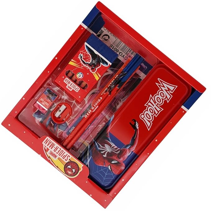 Marwel Stationery Gift Set with Pencil Box, Pencils, Ruler, Eraser & Sharpener Perfect for Students & Creative Minds Birthday Return Gifts (Spiderman).