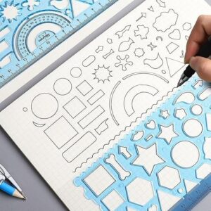 • Versatile Shapes: Features multiple cutouts in various shapes, such as circles, squares, triangles, and hexagons, for diverse drawing and measuring needs.